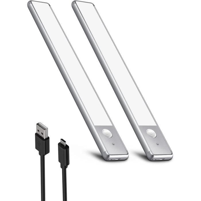 Lampe LED Rechargeable, Lumière Détecteur De Mouvement Interieur, 3 Températures De Couleur, USB-C Eclairage Lampe De Placard Sans Fil Pour Armoire, Placard, Escalier (21cm, 2 Pièce