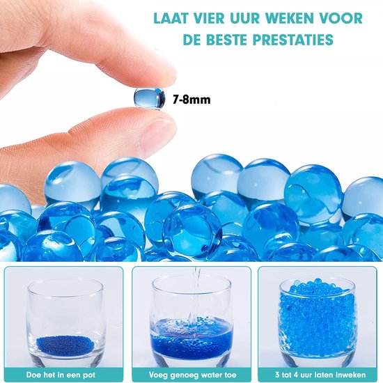 Cette petite version pousse à environ 7-8 mm après absorption d'eau. Perle d'eau Transparentes : Il y a 20000 pcs de boules d'eau transparentes dans le paquet. · Matériaux Sûrs Beaucoup de gens utilisent ces boules comme décoration dans des bols, des récipients, des pots et des vases. Perles D’eau Décoratives Perles D'eau Transparentes - Boules De Gel - Boules D'eau - Perles D'eau - 50 000 Perles D’eau Pour Centres De Table Placez les boules dans une grande quantité d'eau et après environ 3 heures, elles auront la bonne taille d'environ 7 à 8 mm. Ces boules d'eau transparentes de 7-8 mm, fabriquées en polymère naturel, sont non toxiques et biodégradables. Parfaites pour les jeux d'enfants, la décoration ou comme munitions pour pistolets à eau, elles se transforment en perles éclatantes lorsqu'hydratées Ces perles absorbent plus de 100 fois leur propre poids en eau. Billes d'eau transparentes pour fleurs et plantes – Sachet 20g